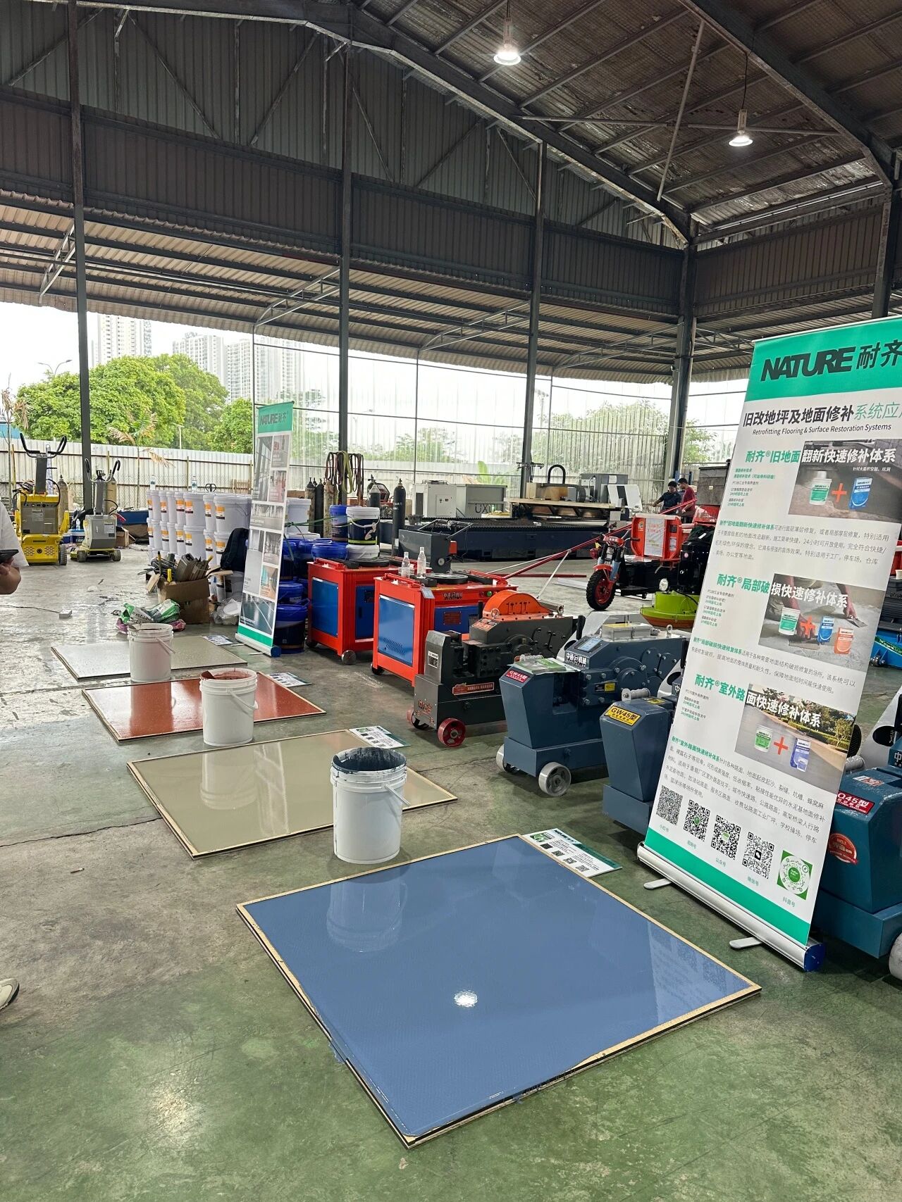 CT面层水泥基自流平地坪系统、GT高强厚层找平地坪系统、ECC水性环氧改性砂浆地坪系统、ST室外双组份耐候地坪系统、MT高强水泥基自流平研磨系统、SWT水性环氧磨石地坪系统、FT无机磨砂系统七类地坪系统的实操演示精彩呈现。直观的操作展示与详实的技术解析相辅相成,让参会者沉浸式学习交流,现场气氛热烈非凡。